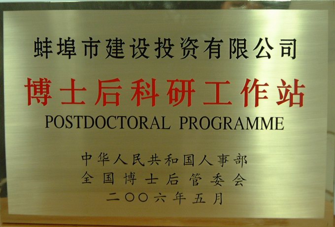 最近,國家人事部以國人部發(fā)[2006]53號文批準蚌埠市建設投資有限公司等省內8家單位設立博士后科研工作站。博士后科研工作站的設立,為公司科研開(kāi)發(fā)和經(jīng)營(yíng)管理引進(jìn)高層次人才開(kāi)辟了新的渠道?! ∧壳?,公司正按照有關(guān)文件要求,結合公司實(shí)際,制定切實(shí)可行的博士后工作管理細則,規范工作程序,逐步建立完善博士后工作管理制度,并抓緊與全國已設立博士后科研流動(dòng)站的高校、科研院所聯(lián)系,盡早確定聯(lián)合招收單位,研究確立高水平的博士后研究項目。博士后工作站建站事宜也正在緊張籌備之中。