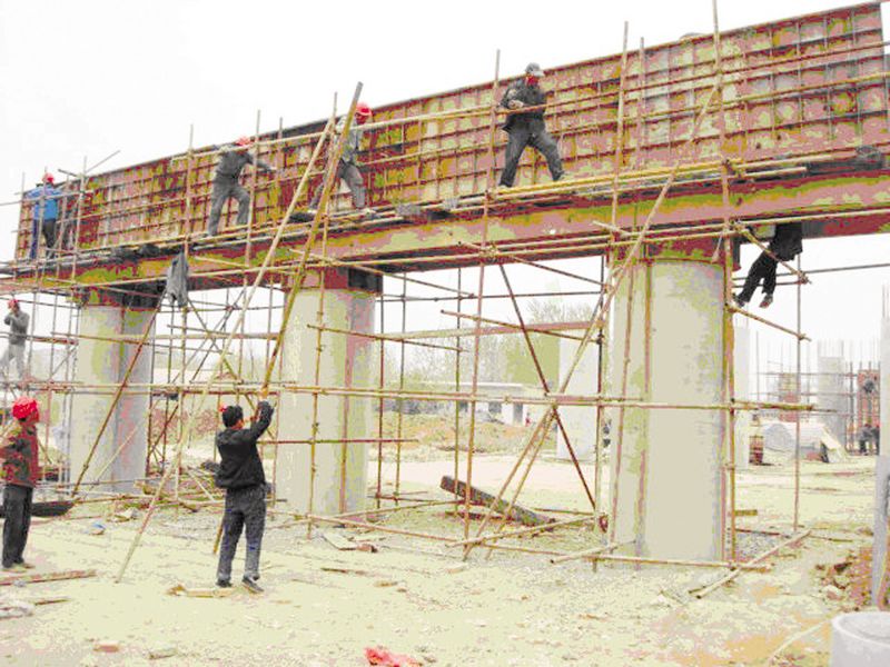 圖③ 國電配套工程之一——— G206線(xiàn)上跨橋建設速度加快。承擔G206線(xiàn)上跨橋施工建設任務(wù)的蚌埠市路橋公司積極響應,周密安排,在項目部掀起了“大干100天,確保五月底主體工程竣工”勞動(dòng)競賽活動(dòng)。圖為4號橋墩蓋梁模板最后檢驗時(shí)的場(chǎng)景。