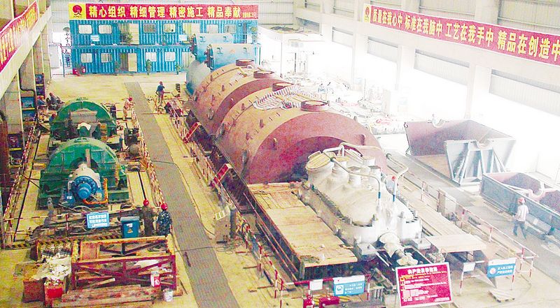 #1機組汽輪機成功扣蓋后的廠(chǎng)房實(shí)景。