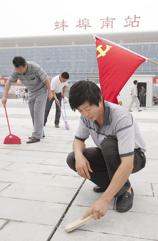6月25日上午,為慶祝中國共產(chǎn)黨建黨90周年暨京滬高鐵開(kāi)通,蚌投集團黨委組織集團本部及所屬19個(gè)子公司共計198名黨員去高鐵蚌埠南站義務(wù)勞動(dòng),清理南站廣場(chǎng)建筑垃圾并清掃地面,為高鐵通車(chē)做出一個(gè)黨員力所能及的貢獻。