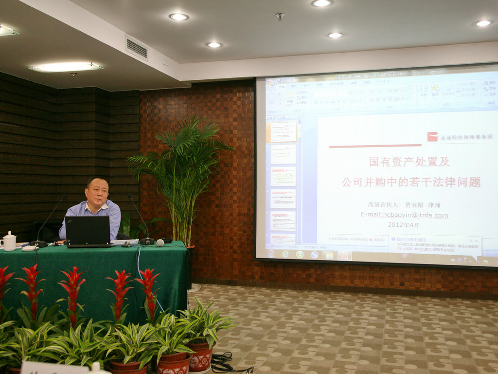 此次培訓由中國國際經(jīng)濟貿易仲裁委員會(huì )仲裁員、北京市律師協(xié)會(huì )公司法專(zhuān)業(yè)委員會(huì )主任賀寶銀主講,賀主任在企業(yè)改制、上市、并購、重組、投資基金以及國際經(jīng)濟貿易仲裁等領(lǐng)域有著(zhù)深厚的理論基礎和豐富的實(shí)踐經(jīng)驗。賀寶銀主任從國有資產(chǎn)處置、公司并購兩方面的若干法律問(wèn)題,結合大量案例,詳盡的分析了國有資產(chǎn)處置的程序、公司并購及流程。賀主任講課內容豐富、指導性強,對于公司進(jìn)一步強化資產(chǎn)管理具有指導意義和借鑒作用。課間參會(huì )人員與賀主任進(jìn)行了良好的互動(dòng)。