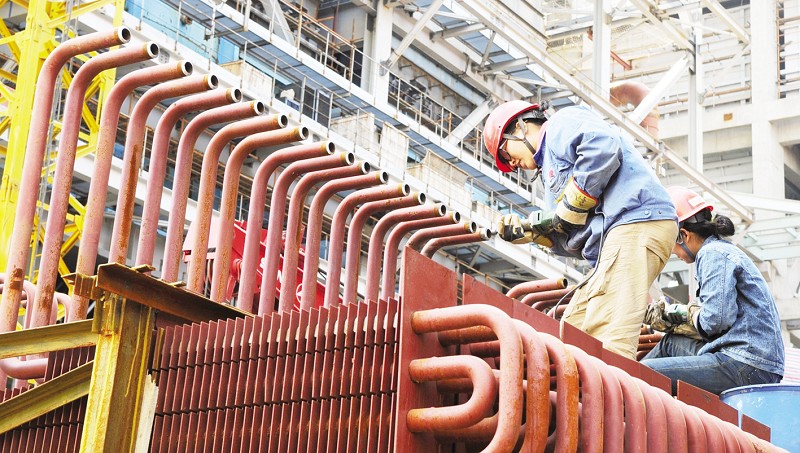 國電蚌埠發(fā)電有限公司以全市開(kāi)展的“推進(jìn)思想解放,弘揚城市精神”大討論為契機,結合自身實(shí)際,在全體員工中大力弘揚“事在人為、工作超前、后來(lái)居上,敢為人先”的企業(yè)精神,開(kāi)展創(chuàng )業(yè)、創(chuàng )新、創(chuàng )優(yōu)活動(dòng),加快工程建設步伐。圖為施工人員在進(jìn)行鍋爐省煤器磨口作業(yè)。