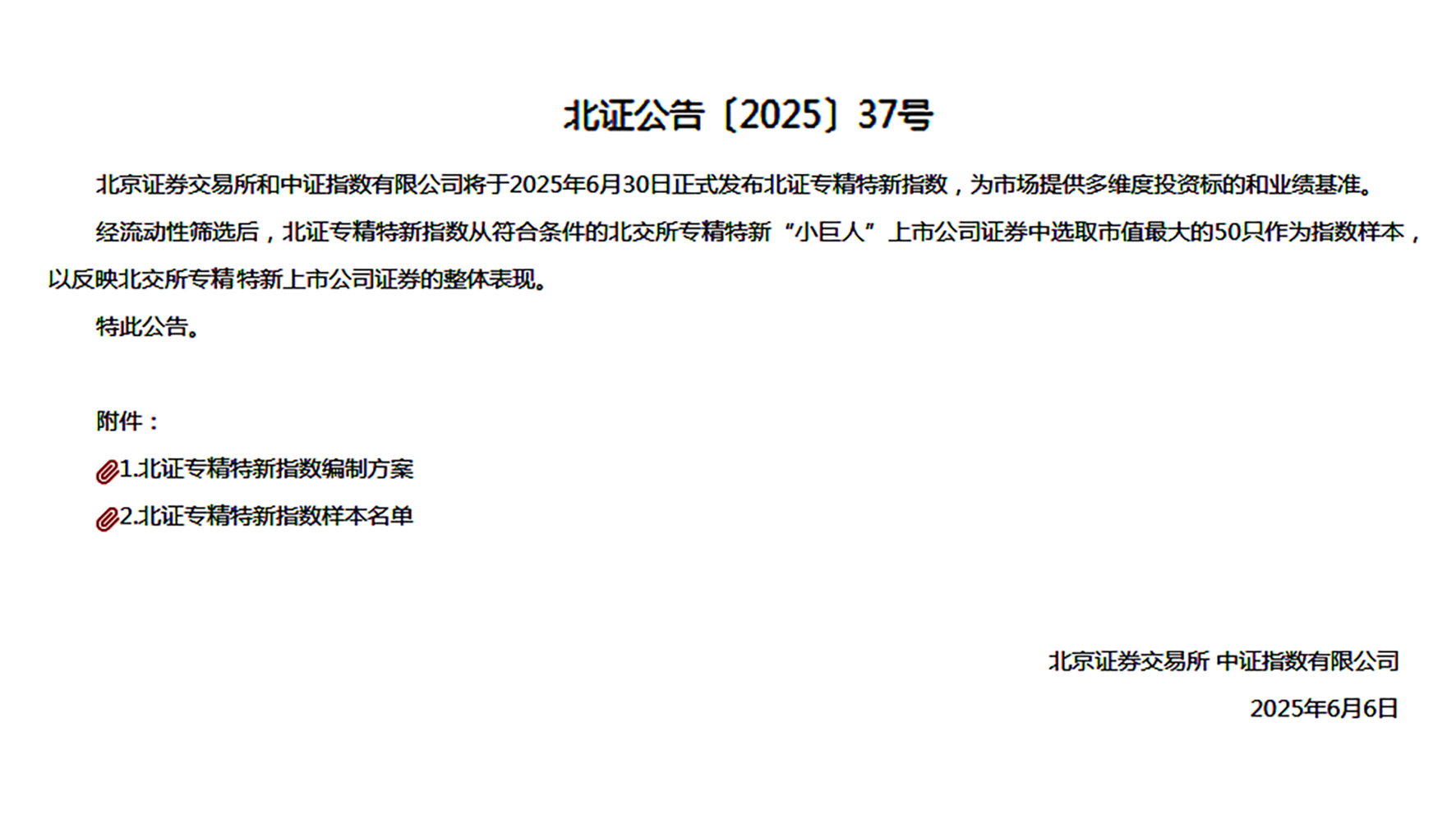 6月6日晚,北交所和中證指數公司共同公告,將于2025年6月30日正式發(fā)布北證專(zhuān)精特新指數,蚌投集團所屬北交所上...